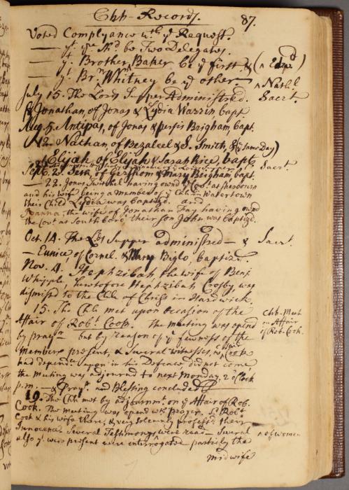 _____ 22. Jonas Twitchel having ownd ye Covt at Sherbourn |